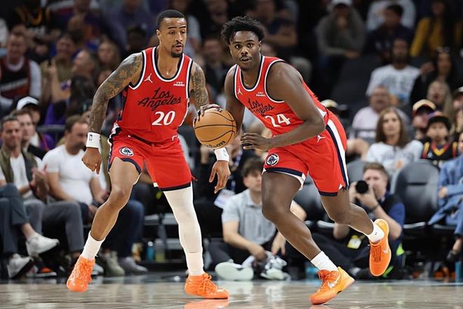本場比賽中,快船雖然又一次遭遇了一場慘敗,但是球隊的替補鋒線新星科比-布朗(Kobe Brown)的表現其實還是具備一定的亮點的。布朗全場出場15分39秒,投籃8中3,三分線外6中3,得到了9分3籃板1助攻的數據,還有1次失誤和1次犯規,正負值為-11。布朗在進攻端命中了多記三分,他也是快船全隊為數不多手感比較可靠的球員了,他也是在進攻端起到了一定的效果。除此之外,布朗在防守端的表現也算是中規中矩,至少積極性還是比較高的。總體來看,布朗還是在場上起到了應該起到的作用。可惜他只是一名出場時間和球權有限的替補球員,他沒有辦法改變其他球員表現糟糕這個事實,他自然也沒有辦法幫助球隊扭轉局面。